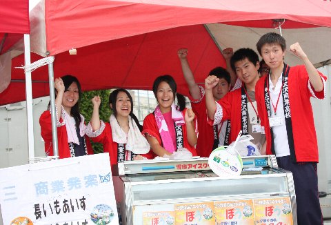 三沢商業高校の皆さんが、自ら発案した「ながいもアイス」を販売している所です。「売るぞー」と気合十分。何かの機会にご賞味あれ。